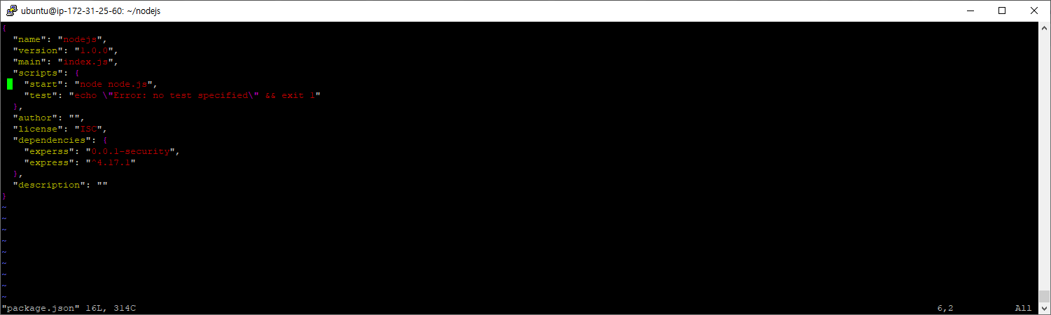 그러기 전에 일단 npm init으로 만든 package.json을 약간 수정해 줘야겠다.