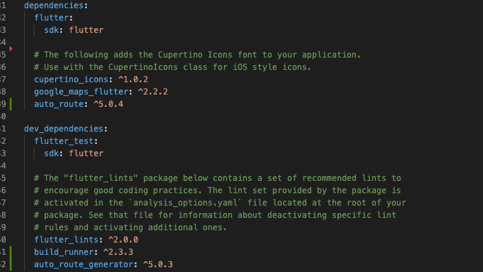 일단 pubspec.yaml파일에 정상적으로 다 들어가 있는지 확인을 해봅니다.