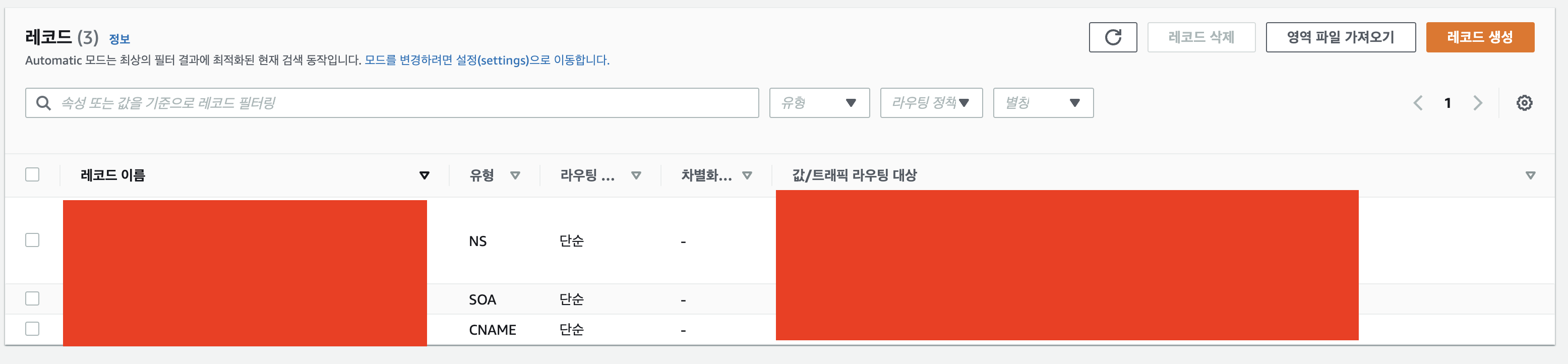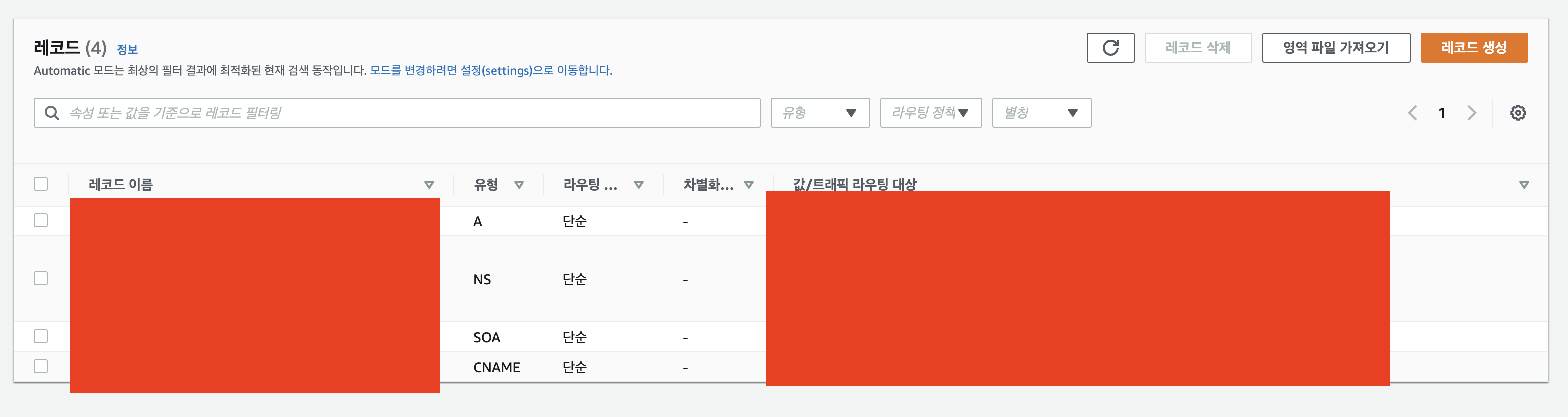 그 후에 route53에 가서 해당 호스팅영역에 들어가서 확인해보면