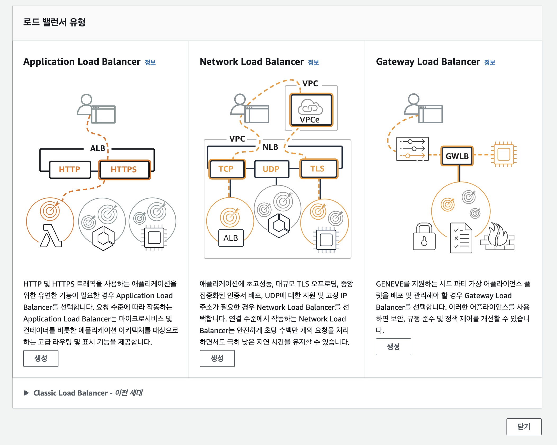 aws ec2의 로드밸런싱탭에 로드밸런서로 가서 로드밸런서 생성을 클릭