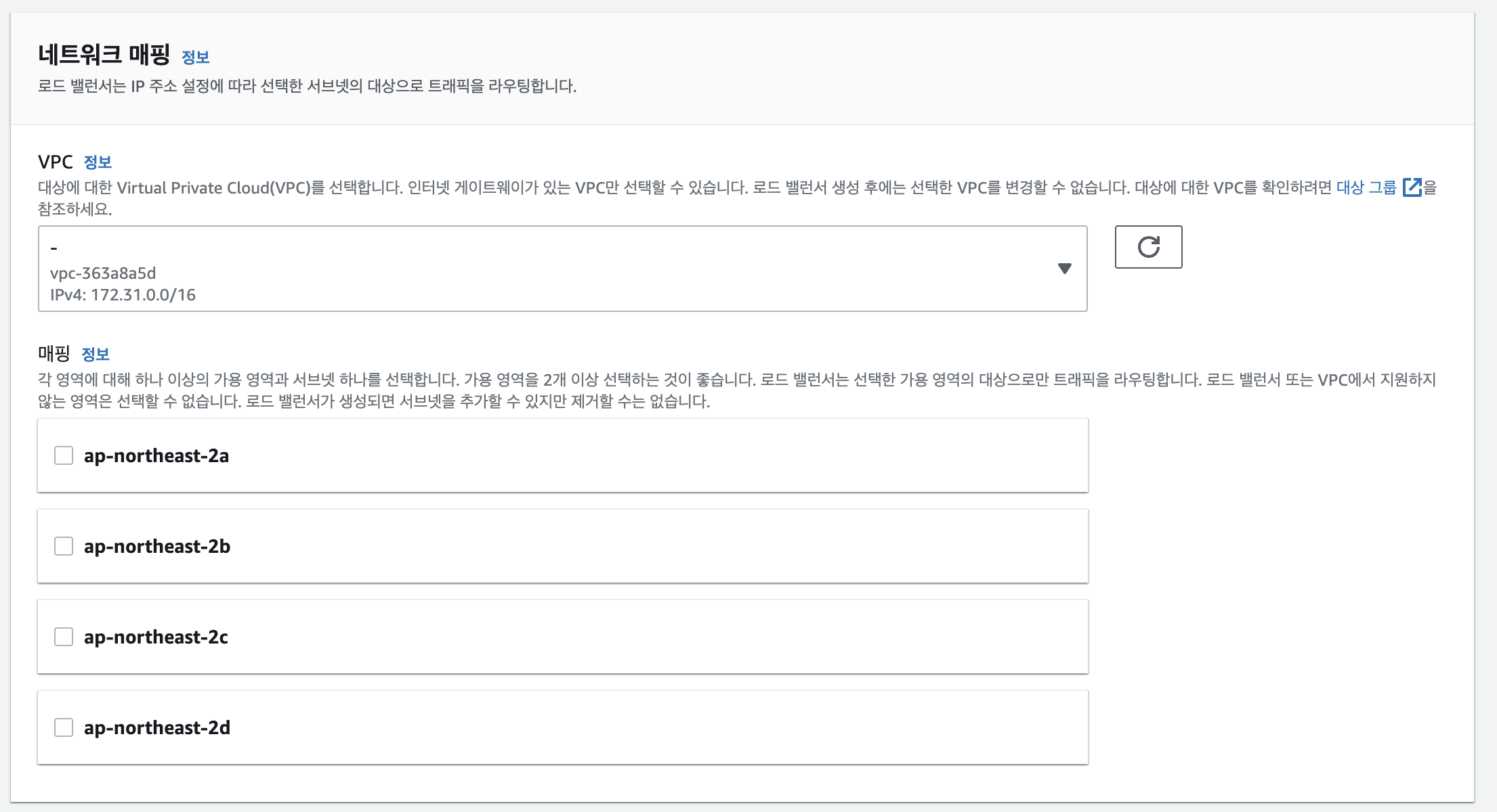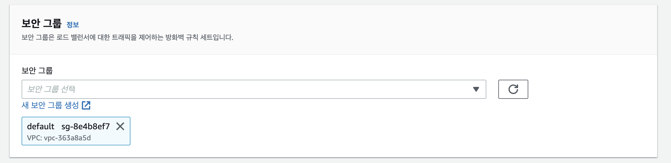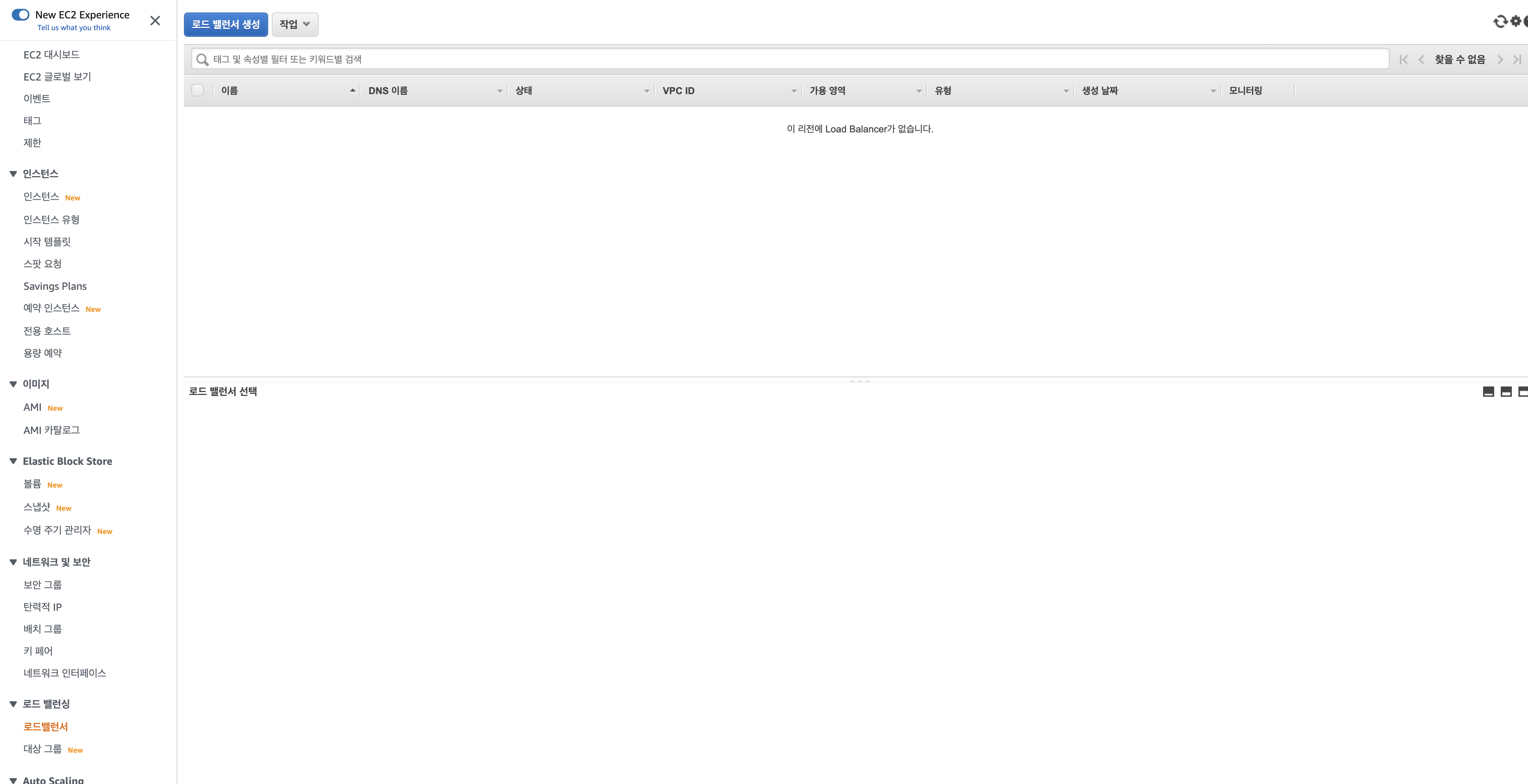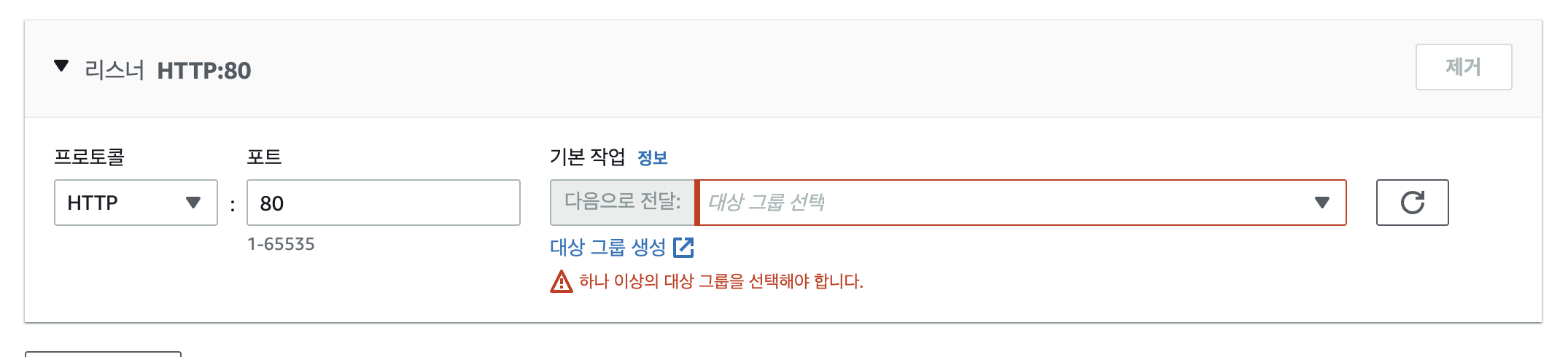 이 단계에서 로드밸런싱을 할 대상 그룹을 생성해 두지 않았다면 아래에 있는 대상 그룹 생성을 눌러서 로드밸런싱을 할 대상그룹을 설정해주어야한다.