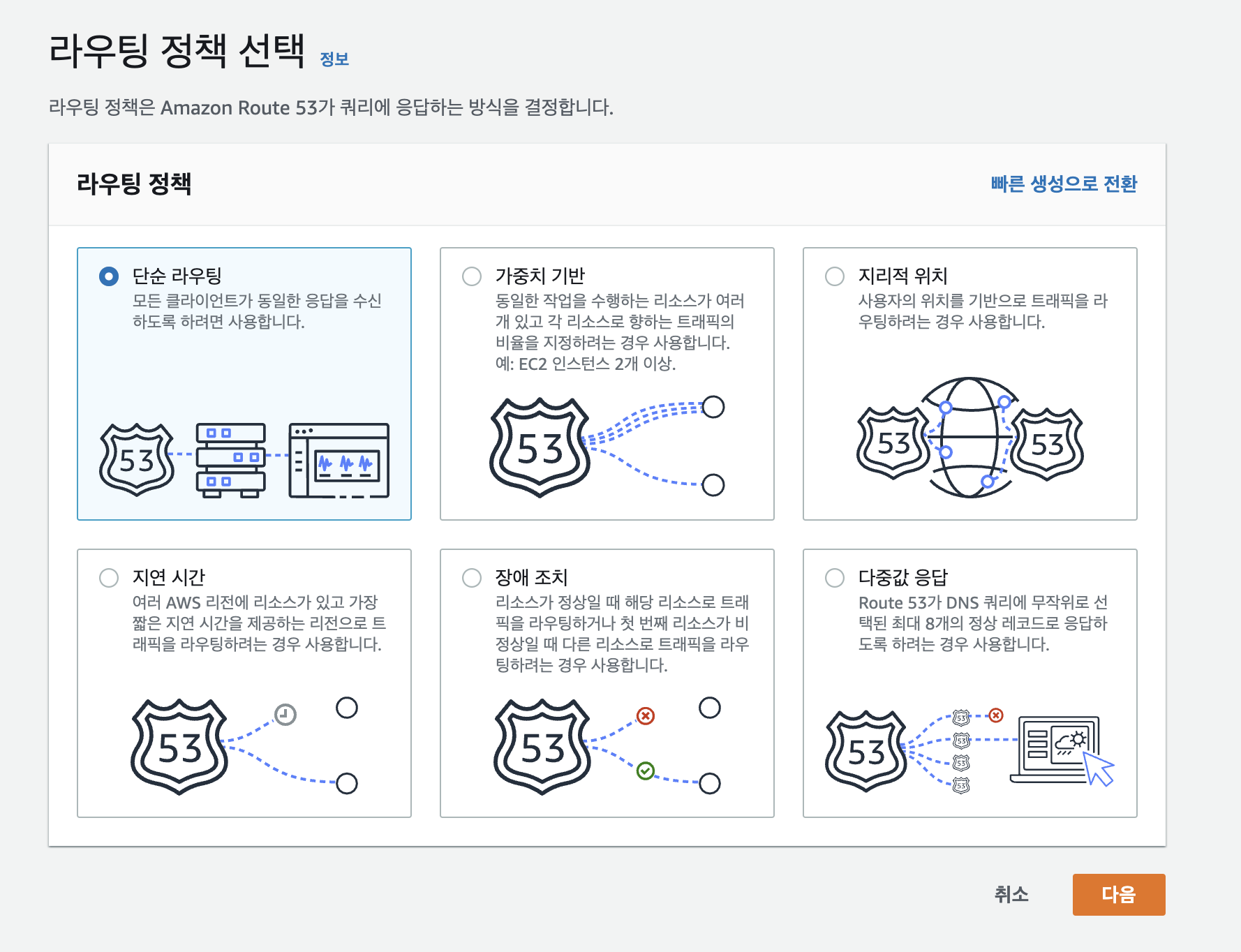 레코드 생성을 누른 뒤 단순 라우팅을 선택