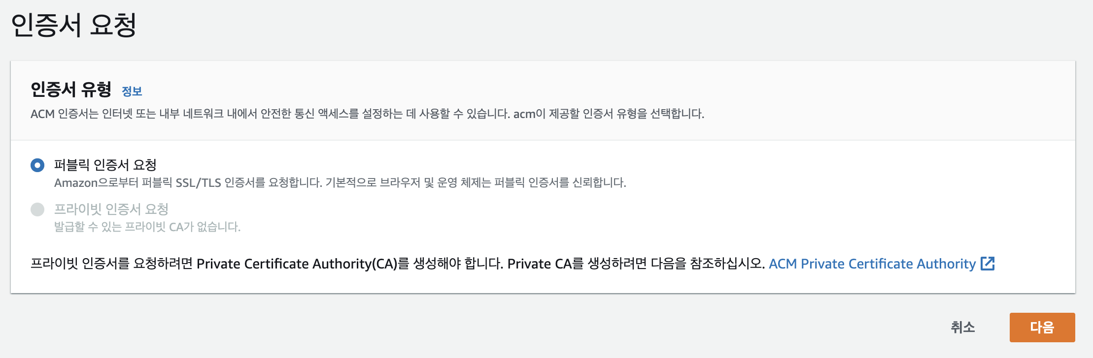 퍼블릭 인증서를 발급받을 것이기 때문에 다음