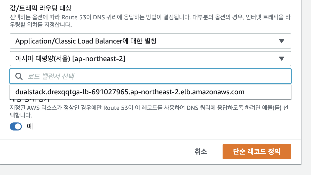 이제 생성한 로드밸런서를 route53에서 사용할 수 있도록 설정해주어야 한다.