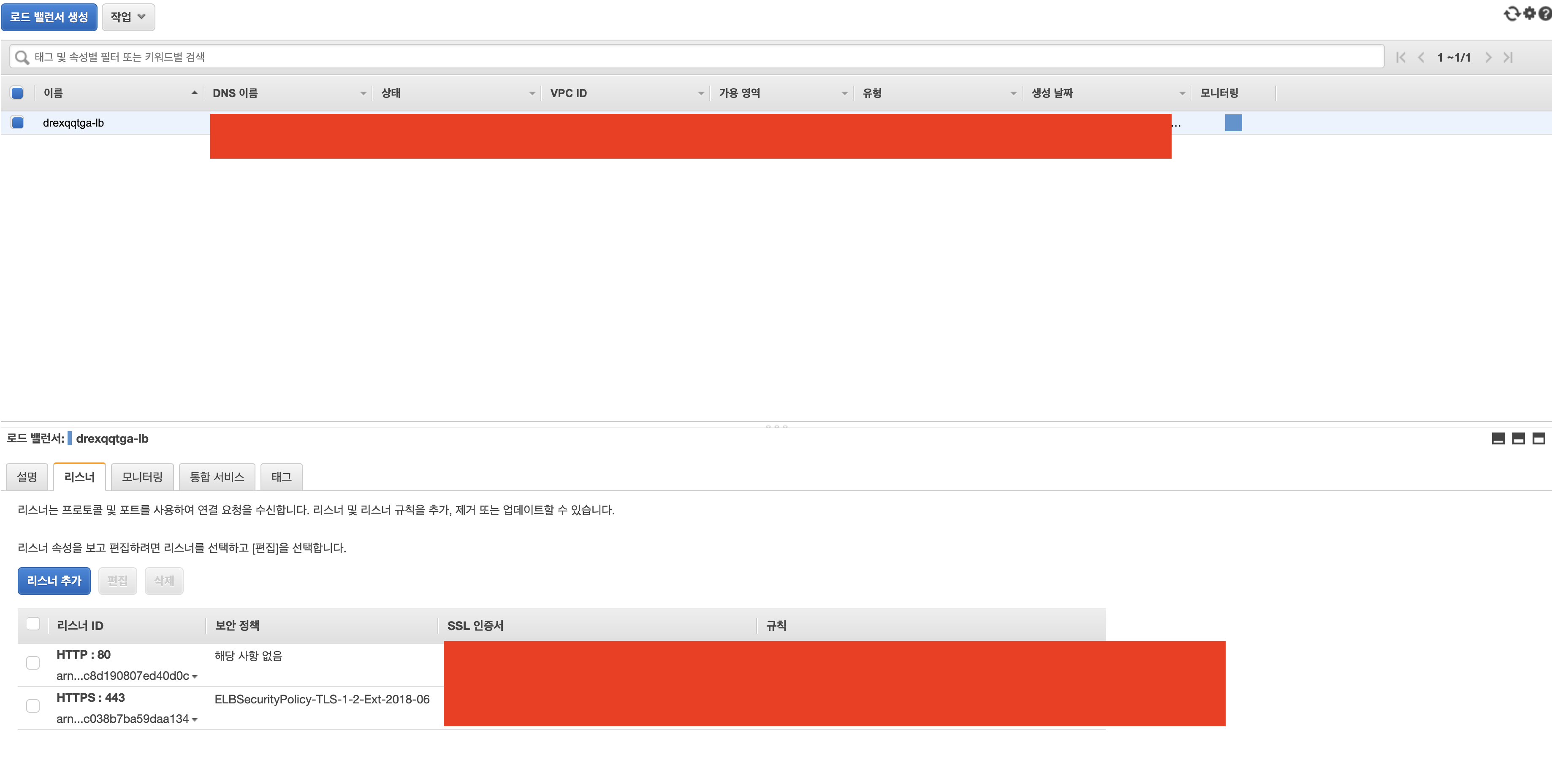 생성이 되었다면 HTTP -> HTTPS자동 연결을 위해서 로드밸런서 탭으로 돌아간다.